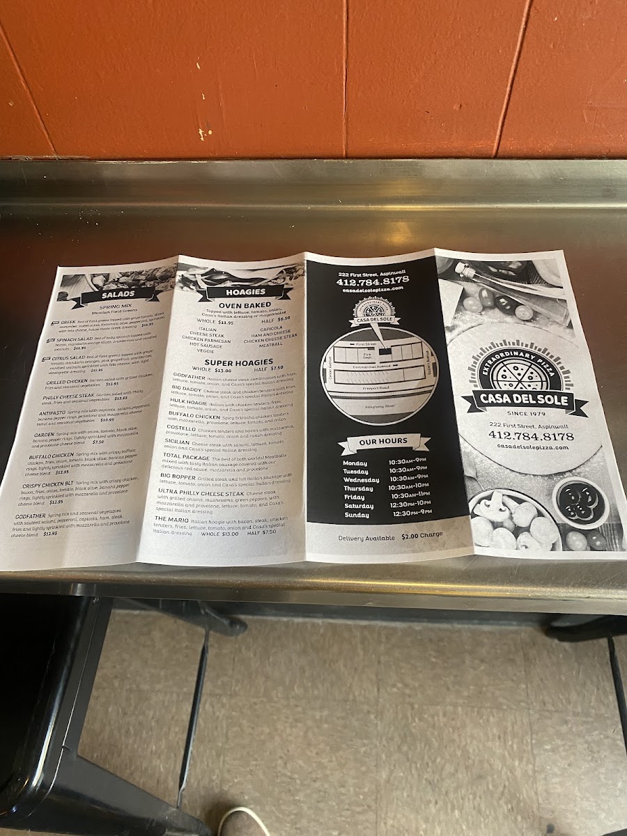 Welcome to Casa Del Sole Pizza, a hidden gem nestled in the heart of Aspinwall, PA. With a warm and inviting atmosphere, this pizzeria has quickly become a local favorite. The address, 222 1st St, serves as a testament to the community-centric approach of Casa Del Sole, where every pizza feels like it's crafted just for you. You can reach them at +1 412-784-8178 for quick takeout or to place an order from their delectable menu.